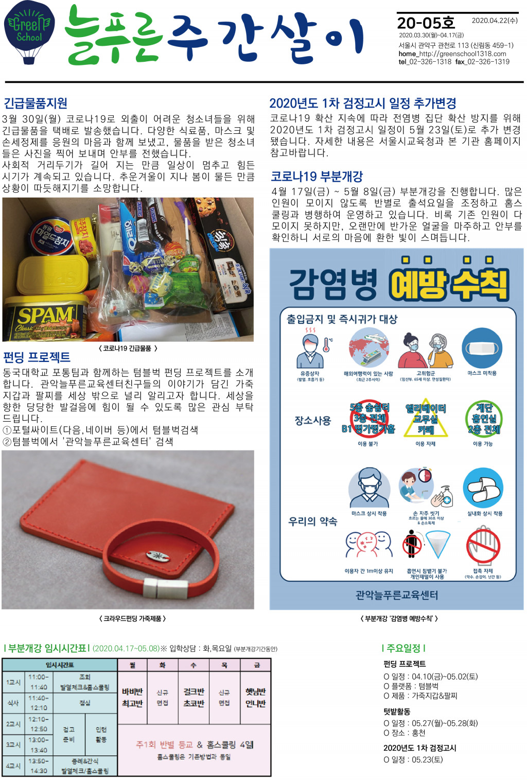 DATE : 2020-04-22 15:32 WRITER : 관리자 VIEW : 2074 20-05호 주간살이 첨부파일 늘푸른주간살이(200420).jpg (494.26 KB) 목록 다음 2020년도 학력취득학기 이전 2020년도 1차 검정고시 일정 추가변경 로그인 후 댓글을 작성할 수 있습니다.