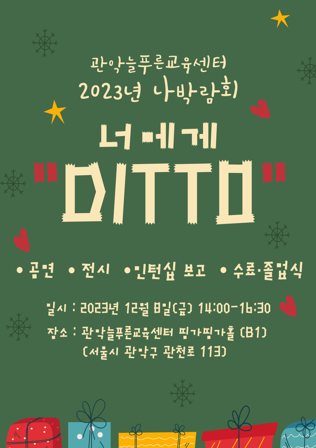 언제나 관악늘푸른교육센터의 청소년들에게 "DITTO"(디토:동감)해주시는 모든 분들께 감사드리며,