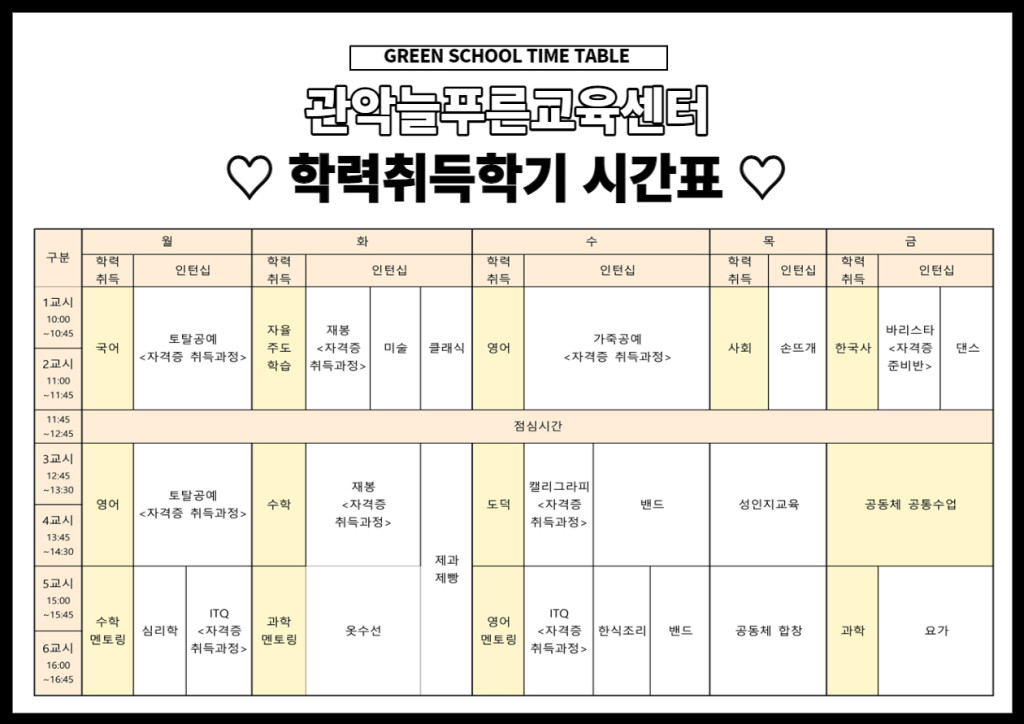 DATE : 2023-05-09 13:13 WRITER : 관리자 VIEW : 881 2023년 학력취득학기가 시작되었습니다!! 첨부파일 외부용.jpg (124.94 KB) 목록 다음 2023년 제10회 십대여성직업체험축제를 진행합니다!! 이전 관악늘푸른교육센터에서 공동체캠프를 진행합니다! 로그인 후 댓글을 작성할 수 있습니다.