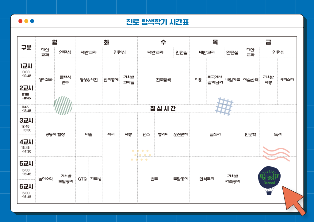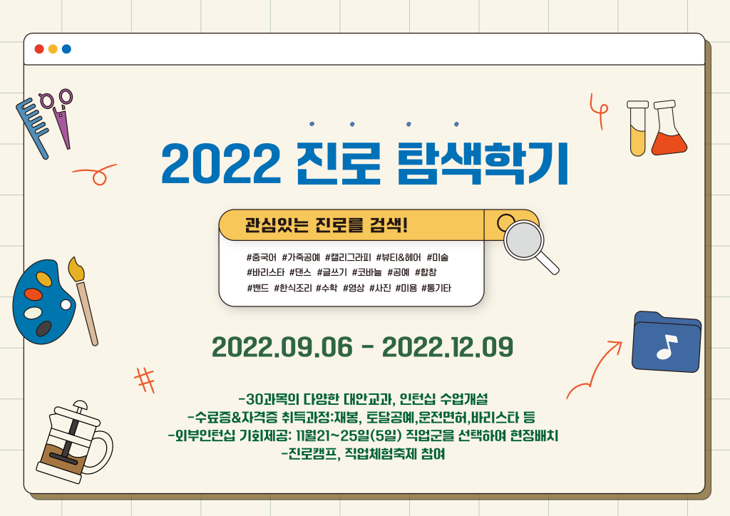 DATE : 2022-09-08 13:15 WRITER : 관리자 VIEW : 1128 2022년 진로탐색학기가 시작되었습니다.!! 첨부파일 KakaoTalk_20220906_124236187.png (140.96 KB) KakaoTalk_20220906_124236187_01.png (157.30 KB) 목록 다음 관악늘푸른교육센터에서 진로캠프를 합니다. 이전 늘푸른뉴스레터(2022년 후반기) 로그인 후 댓글을 작성할 수 있습니다.