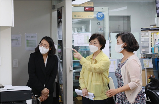 "정영애 여성가족부장관이 관악늘푸른교육센터를 방문하여 코로나19 방역점검 및 간담회를 통해 시설 운영현황을 파악하고 종사자들을 격려하는 시간을 가졌습니다. 함께 소통하는 소중한 시간을 내어 주셔서 감사합니다."