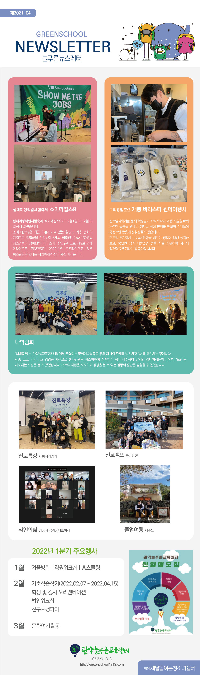 DATE : 2022-02-09 10:12 WRITER : 관리자 VIEW : 1416 21-04호 늘푸른 뉴스레터 첨부파일 21년 4분기 늘푸른 뉴스레터.jpg (664.46 KB) 목록 다음 2021-4분기 새날 소식지 이전 늘푸른뉴스레터(2022년 후반기) 로그인 후 댓글을 작성할 수 있습니다.