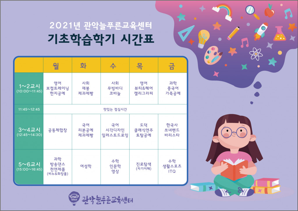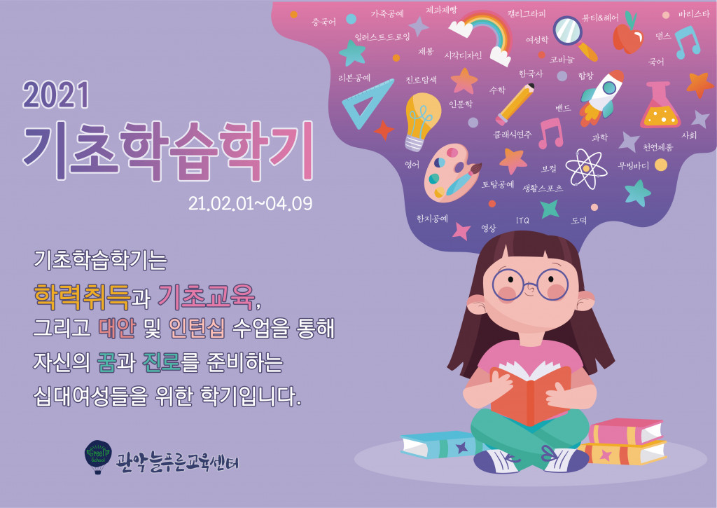 DATE : 2021-01-29 17:16 WRITER : 관리자 VIEW : 2000 2021 기초학습학기 웹자보&시간표 첨부파일 2021 기초학습학기 홍보용 시간표.jpg (154.51 KB) 2021 기초학습학기(수정2).jpg (161.89 KB) 목록 다음 관악늘푸른교육센터 신입생모집 이전 실무교사 채용 최종합격자 공고 로그인 후 댓글을 작성할 수 있습니다.