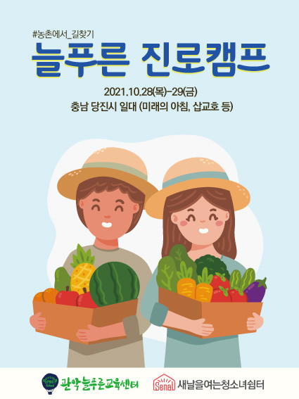 DATE : 2021-10-27 09:29 WRITER : 관리자 VIEW : 1795 센터 친구들과 함께 충남 당진으로 진로캠프를 떠납니다.^^ *방역 수칙을 잘 지키며 안전하게 농부 체험을 하려고 합니다. 친구들에게 좋은 경험이 되길 바랍니다.^^ 첨부파일 진로캠프 현수막 시안(150x200).jpg (62.31 KB) 목록 다음 센터에서 2021년 9회 십대여성직업체험축제를 진행합니다. 이전 늘푸른뉴스레터(2022년 후반기) 로그인 후 댓글을 작성할 수 있습니다.