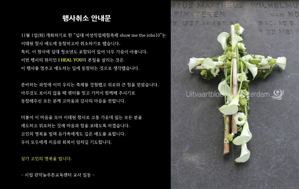 이태원 참사 애도에 동참하고자 취소하기로 했습니다.