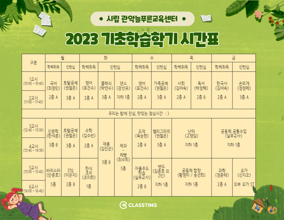 DATE : 2023-02-03 18:55 WRITER : 관리자 VIEW : 1025 2023년 기초학습학기가 시작됩니다!! 첨부파일 기초학습학기 시간표(이미지).png (465.87 KB) 목록 다음 관악늘푸른교육센터에서 진로특강을 진행합니다!! 이전 22-02호 늘푸른 뉴스레터 로그인 후 댓글을 작성할 수 있습니다.