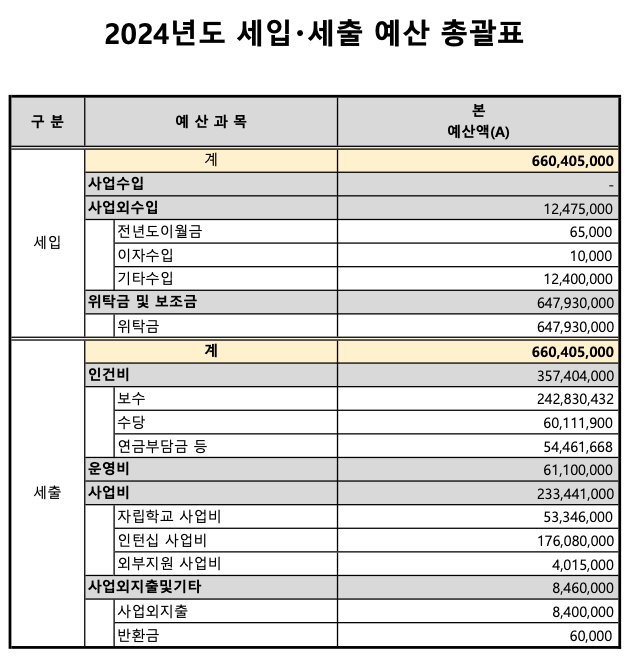 DATE : 2024-03-14 11:05 WRITER : 관리자 VIEW : 1054 [예산] 2024년 관악늘푸른교육센터 본예산 공고 첨부파일 2024년 본예산 공고.pdf (90.00 KB) 본예산공고.png (73.06 KB) 목록 다음 [결산] 2023년 관악늘푸른교육센터 세입세출 결산서 공고 로그인 후 댓글을 작성할 수 있습니다.